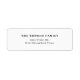Uma etiqueta de endereço de retorno minimalista contemporânea com tipografia clássica em preto sobre um fundo branco mínimo e simples. Personalize os textos para um toque pessoal. Um design simples, minimalista e na moda fará você se destacar nesta temporada de festas!