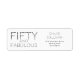 Modern Minimal Fifty and Fabulous black 50th birthday return address label that you can personalize and send out for your fiftieth birthday party celebration. The words "Fifty and Fabulous" are set using trending bold font typography. . Text colors can be changed using the edit menu.