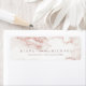 Um fundo de abstrato que lembra o mármore brilhante em tons de ouro rosa é o pano de fundo para o texto elegante e os layouts modernos de design nos pedaços desta bela suíte de casamento. A etiqueta de endereço de retorno de casamento mostrada aqui apresenta texto centralizado bordado por mármore elegante. Adicione facilmente seus próprios nomes e endereços usando o modelo fornecido. Procure ID816 para ver outras peças e opções de cores para este conjunto.