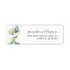 Nossa etiqueta de endereço de retorno de convite de casamento apresenta a folhagem aquarela eucalipto com a tipografia moderna de script que você pode mudar facilmente clicando no botão "Personalizar"
