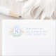 Esta etiqueta do endereço de volta de Natal tem uma design de veados de Natal com uma letra de monograma azul no meio. Você pode personalizar com seu nome e endereço.