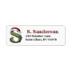 Adicione um toque festivo ao seu correio de férias com estas etiquetas de endereço de retorno personalizadas! Cada etiqueta apresenta um monograma de filme de desenho animado "S" adornado com um chapéu de Papai Noel, junto com seus detalhes de endereço. Personalizadas com o ano, essas etiquetas trazem um pouco de encanto sazonal para cada envelope que você enviar. Perfeito para cartões de natal, convites de festas ou saudações sazonais, essas etiquetas adicionam um detalhe animado e pessoal que amigos e familiares irão adorar. Deixe o seu espírito de feriado brilhar desde a primeira vista do seu correio com estas etiquetas de endereço deliciosas e personalizadas!