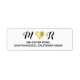 Um return_address_label personalizado e elegante com a imagem de um coração dourado falso entre letras maiúsculas de casal (estilo de fonte manuscrito). Personalize-o com as iniciais da esposa e do marido e a localização... para as suas cartas de casamento.