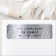 Um fundo metálico falso prateado. Uma floresta de prata de inverno, árvores com estrelas como decoração. Modelos para o nome e endereço da sua família. Letras negras.