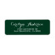 Preencha seus cartões e convites com este rótulo de endereço personalizável. Apresenta caligrafia moderna e tipografia simples. As cores são verde-florestal e branco, perfeito para os eventos de inverno. Personalize adicionando um nome e endereço. Isto é parte de uma coleção de casamentos.
