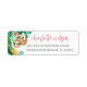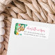 A ilha design de música apresenta folhas de monstera e folhagem de aquarela verde com uma preguiça doce pendurada nas árvores, enfeitada com uma flor rosa em sua cabeça. Os sotaques florais tropicais coloridos completam o design. Personalize com seu nome e endereço de retorno. Projetado para coordenar com nossa coleção de aniversários de criança de Selva Tropical.