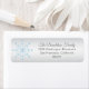 Envelope festivo que devolve etiquetas de endereço para saudar cartões de natal de Natal. Floco de neve azul e prateado com nome e endereço personalizados da família.