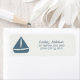 Adicione um toque náutico aos convites e outros envios com estas etiquetas de endereço de retorno que apresentam uma ilustração simples de um veleiro a azul contra um fundo colorido creme.