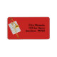 Etiqueta de endereço vermelho de 2"l x 3,75"w com uma imagem da partitura musical para "In the Mood" de Glen Miller e trombone de ouro. Veja o convite correspondente, confetti, bolsa de favor, caixa de favor, etiqueta de favor, bolsa de presente grande, adesivo salva-vidas, adesivos de vinilo feitos sob medida e papel de embrulho. Veja toda a coleção de Etiquetas Patriótica dos anos 40 nos CONVITES | Seção Stickers & Labels