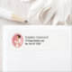 Etiquetas de endereço com uma ilustração de uma noiva sorridente segurando um buquê de flores no seu vestido branco de rico e vestindo um véu. Defina dentro um quadro oval cor-de-rosa com uma borda dimensionada.