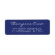 Modelo de etiqueta de retorno de script simples e moderna apresenta tipografia branca sobre um fundo azul marinho. Esta etiqueta de endereço náutico fácil de personalizar inclui um nome de tripulante ou tripulação de barco em uma fonte nobre e expansiva combinada com uma fonte de sans serif fina, moderna e clara. A letra elegante lembra uma superfície de água ligeiramente ondulada e é adequada para temas costeiros ou náuticos. © y.BEE SEA #ZazzleMade #nauticaldevolndestinslabel #navybluereturnaddress