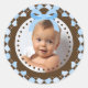 Etiquetas azuis e marrons adoráveis do argyle. Grande maneira de anunciar seu bebê novo ou como o obrigado você para presentes do chá de fraldas. Personalize com sua foto.