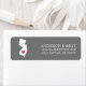 Estado único e moderno da nova etiqueta de endereço de retorno do novo JERSEY definida em um fundo de cinza com um coração vermelho. Visite nosso compro para ver o anúncio em movimento e o carimbo de correio.