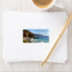 Etiquetas de endereço de retorno em cena de praia e oceano. Cliff encontra o mar azul ao longo da costa da Califórnia.