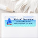 Uma cena náutica relaxante de um veleiro bl ue cercado por águas bonito do oceano azul de praia aqua. Personalize esta etiqueta com o seu nome ou endereço. Arte por Delightful-Doodles.