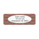 Essas etiquetas de endereço de retorno têm um design de boho de laranja e ondas vermelhas em um campo de cinza.