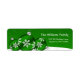 Etiquetas modernas personalizadas de endereços de volta de Natal, com Enfeites de natal verdes em flocos de neve em fundo de neve. Mostrado em verde e branco. Personalize facilmente!