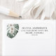 Uma etiqueta de endereço de retorno com o flair tropical, esta design tem uma folha Monstera com elegante orquídeas brancas em aquarelas moles. A design tem talento costeiro com um estilo de vida ilha. Personalize o modelo de texto com seu nome e endereço de retorno.
