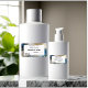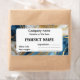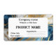 Rótulo do produto com um belo design de mármore azul, dourado e branco que dá uma aparência luxuosa e moderna.