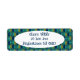 Estas etiquetas de endereço de retorno têm uma design moderna de século médio de ovais em brasa com semicírculos em verde e dentro marinho num campo de turquesa.