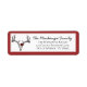 Esta etiqueta de endereço de volta do Natal Ocidental deste país apresenta um crânio de renas desenhado à mão com galhadas adornadas com rosas vermelhas. Basta clicar em "Personalizar" e seguir os prompts de texto para torná-lo exclusivamente seu.