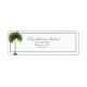 Etiquetas de endereço de retorno pessoal elegantes da Palm Tree. Uma palmeira elegante está sobre os nomes Noiva e Grooms. Elegante design de casamento formal moderno. A informação é facilmente alterada para a sua. O script moderno é facilmente alterado para suas próprias informações personalizadas. O rótulo personalizado está sozinho, mas faz parte de um pacote de papéis de carta de casamento em just Fine Designs.