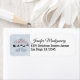 Etiquetas de endereço de Natal festivo. Uma cinza sutil com flocos de neve. Rico com letra de tendência que diz: Feliz Natal e Feliz ano novo. Com um Papai noel preto de silhueta no seu trenó sendo puxado por sua rena voando pelo céu.