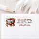O lado esquerdo destas etiquetas de endereço de retorno de Feriado divertido apresenta uma imagem de um adorável cão branco Bulldog francês deitado num trenó vermelho festivo e Papais noeis de ouro. Seu texto personalizado está em vermelho e preto à direita. Um sutil fundo de confete de ouro dá um pouco extra de magia de Natal.