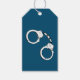 Etiqueta de presente azul divertida impressa com algemas. Ideal para polícias ou trabalhadores da segurança.