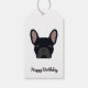 Esta etiqueta de presente de aniversário do Bulldog francês preto faz a adição perfeita ao presente de qualquer amante francês. A design apresenta um rosto bonito preto de Bulldog Francês com uma pata de cinza clara e um fundo com padrão ósseo. A cor do texto e o estilo da fonte podem ser alterados usando-se a opção personalizá-lo. Itens correspondentes disponíveis.