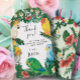 Tema tropical adorável favorece etiquetas com papagaios exóticos fofos e verde-azul. Personalize a formulação adequada à sua ocasião, ou seja, aniversário, chá de fraldas, aspersão para bebês, batismo, etc., etc.