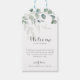 Estas etiquetas de presentes de boas-vindas para o casamento de eucalipto, verdes minimalistas, são perfeitas para um casamento rústico. A design apresenta uma coloração aquosa elegante folhas verdes de eucalipto. Estas etiquetas são perfeitas para bolsas de boas-vindas de hotéis e casamentos de destino.