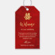 Esta etiqueta de presente de boas-vindas do casamento chinês mostra um símbolo vermelho de felicidade do ouro em um fundo vermelho rubi brilhante. Personalize as etiquetas com a localização do seu casamento, uma pequena nota de boas-vindas, os seus nomes e a data do casamento. Essas etiquetas são perfeitas para casamentos de destino e bolsas de boas-vindas de hóspedes.