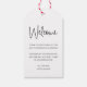 Esta engraçada e moderna etiqueta de boas-vindas, colocada na sua bolsa de boas-vindas ou cesta em suas acomodações, é uma boa maneira de obrigado seus convidados fora da cidade para a viagem que eles precisavam fazer para chegar ao seu casamento. Material de papelaria e material de festa disponíveis.