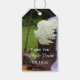 Obrigado seus convidados para participar de sua cerimônia de chá de panela ou casamento casual, mas elegante, quando você junta a encantadora Rustic Hydrangea e Cowboy Boots Country Western Wedding Tag a favor do partido ou pequeno presente. Estas etiquetas favoritas, personalizadas em forma de chic ocidental, apresentam uma fina fotografia floral de um par de botas de cowboy de couro castanho recheadas com um buquê de flores brancas de hydrangea e um véu branco de brasa com uma roda de vagão enferrujada e um fundo natural verde-turvo.