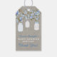 Burlap e Mason jar com etiquetas de presente de chá de fraldas de cereja azul. Você pode personalizar essas marcas de arrombamento rústicas e de presente jar com seu texto no estilo de fonte e na cor de sua escolha.