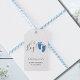 A Tag de Chá de fraldas do Garoto Bonito é decorada com os pés de bebê brilhantes azuis e as palavras, Oh Menino! Facilmente personalizável.