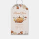 Etiquetas de presente de chá de fraldas de outono personalizadas, com abóbora de laranja elegante rústica com design de flor silvestre de outono.