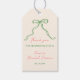 As etiquetas de presente "Obrigado", brancas, que apresentam um belo arco desenhado à mão num estilo divertido e lúdico, acompanhadas de uma fonte casual e escrita à mão que captura perfeitamente o entusiasmo e a alegria da ocasião. As etiquetas vêm num esquema de cores encantador de verde-floresta e coral, evocando sentimentos da natureza, calor e felicidade. Estas cores complementam perfeitamente o design lúdico e reforçam ainda mais o humor festivo da ocasião.