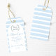 Mostre apreço com este encantador obrigado de pré-disquete... que as etiquetas de presentes foram feitas para um primavera ou chá de bebê boho de verão. Adorados com um charmoso cavalo de balanço de madeira azul-pastel aninhado entre flores de primavera azul-esverdeadas, essas etiquetas exuam elegância. A adição de um script clássico de caligrafia azul-claro melhora ainda mais seu encanto.