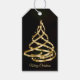 Christmas Shiny Golden Ribbon Tree Sparkle Black Gift Tags. Unique, beautiful, stylish design. Easy to be personalized. Font style, size and colors can be changed. Matching items are available.