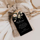 Estas clássicas etiquetas de presentes de casamento preto de flor silvestre são perfeitas para um casamento moderno. O design apresenta uma elegante e elegante cor d'água, pincelada, rosa, flores silvestres multicoloridas desenhadas à mão, perfeitamente organizadas em buquês atraentes. Estas etiquetas são perfeitas para bolsas de boas-vindas de hotéis e casamentos de destino.