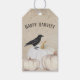 Celebre a temporada com essas etiquetas de presente rústicas com um corvo empoleirado em abóboras brancas e o texto "Feliz Colheita" acima. Perfeitas para presentes de Ação de Graças, lembrancinhas de festa de outono ou presentes de anfitriã da temporada, essas etiquetas adicionam um charmoso toque de casa de fazenda às suas celebrações de outono.