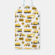 Obrigado de festa de aniversário de construção você é a favor da etiqueta de presente, branca amarela e cinzas com um padrão de construção fofo no verso da etiqueta.