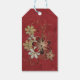 Parede de couros vermelhos e flores brancas, vermelhas e beges, com espirais