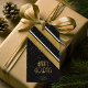 Parte de um conjunto de design coordenadores para o Natal, este presente etiqueta apresenta faixas diagonais com um tema externo em tons de ouro, preto e branco. Foi fornecido um texto "Feriados Felizes" opcional e um modelo para adicionar seu nome e/ou outro texto. Procure ID861 a ID864 para ver opções de cores adicionais e outros produtos neste conjunto de design de Natal moderno.