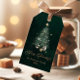 Celebrate the season with timeless elegance using this beautiful gift tag. The design showcases a watercolor Christmas tree with wrapped gifts against a dark green background and accented with shimmering gold details. A perfect finishing touch for your Christmas presents or handmade holiday items.