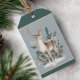 A graceful deer stands among pine branches and snow, framed by soft blue-gray tones and subtle gold accents. The painterly style and muted palette create a calm, refined look that feels both natural and sophisticated. A beautiful way to bring a touch of quiet winter luxury to your holiday gifts. Easily personalize the message and name on the back of the tag with just a few clicks.