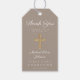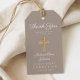 Etiquetas de Presente Personalizadas Elegantes Cruz Religiosa Bege Primeira Comunhão.