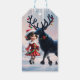 Etiqueta Para Presente Elfo de Natal bonito e renas escuras.